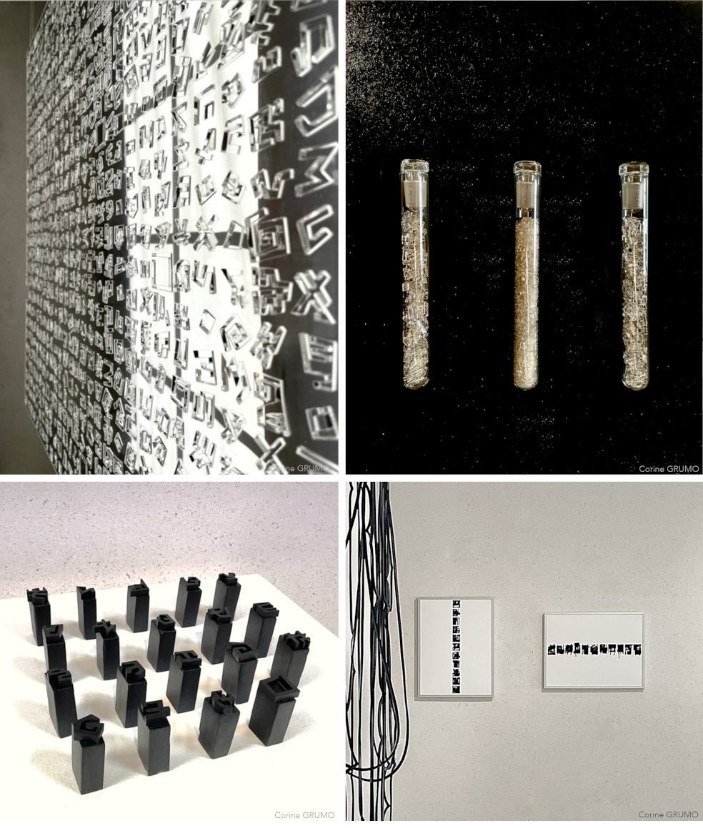 Puis, avec le développement du numérique j’ai réalisé l’importance de la trace de la lettre, quelle que soit la langue ou la graphie, trace tangible qui a favorisé l’essor de la civilisation humaine et demeure un point de repère essentiel pour les êtres de langage et d’écriture que nous sommes en nous « ancrant » dans l’espace et le temps réels. C’est donc à la redécouverte ou régénération de la lettre-trace mise à mal par le numérique que je travaille en créant objets ou installations, in situ notamment. Je m’inspire en effet beaucoup du cadre historique, culturel ou architectural dans lequel j’interviens et avec lequel je m’efforce de faire dialoguer mes travaux.