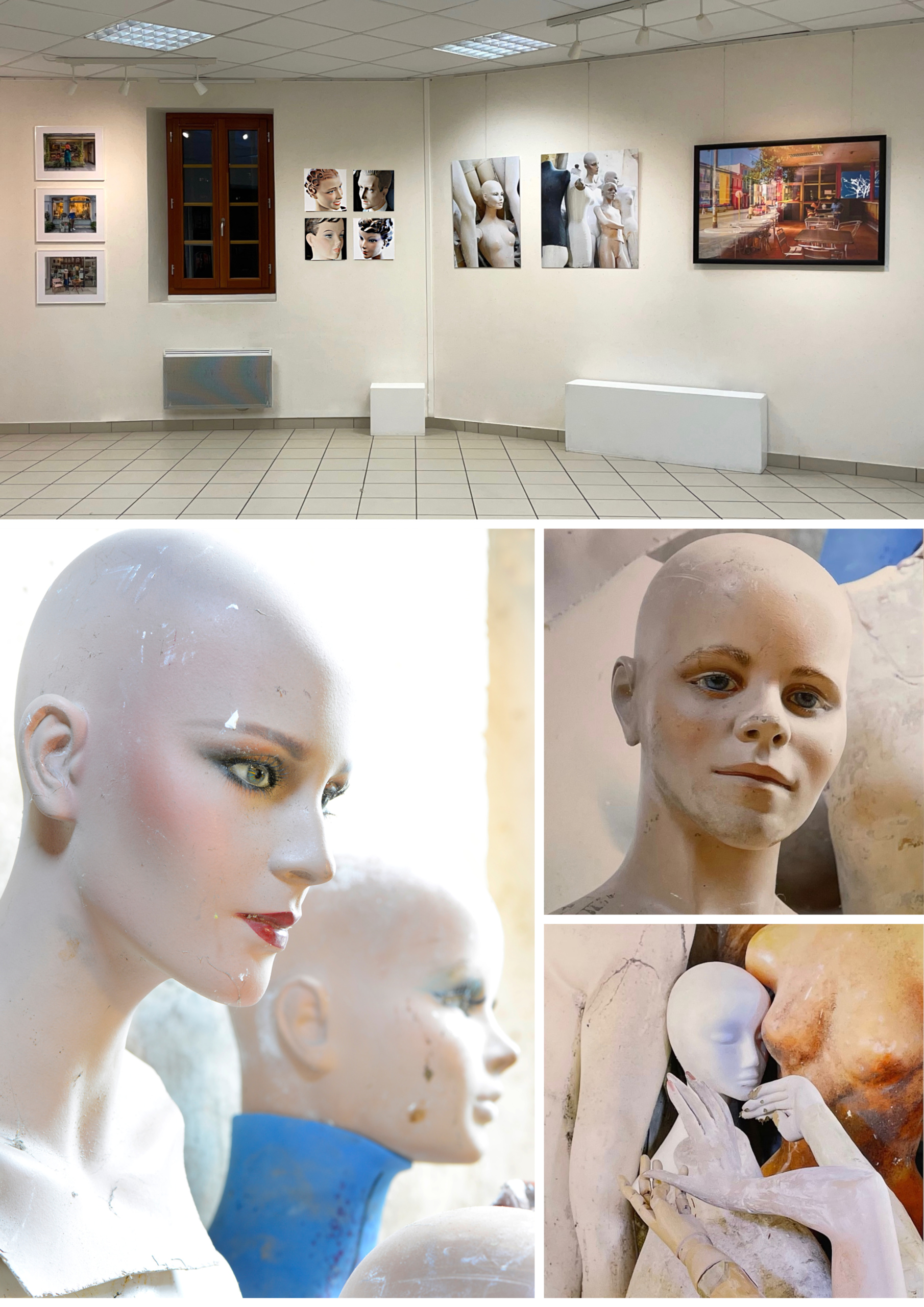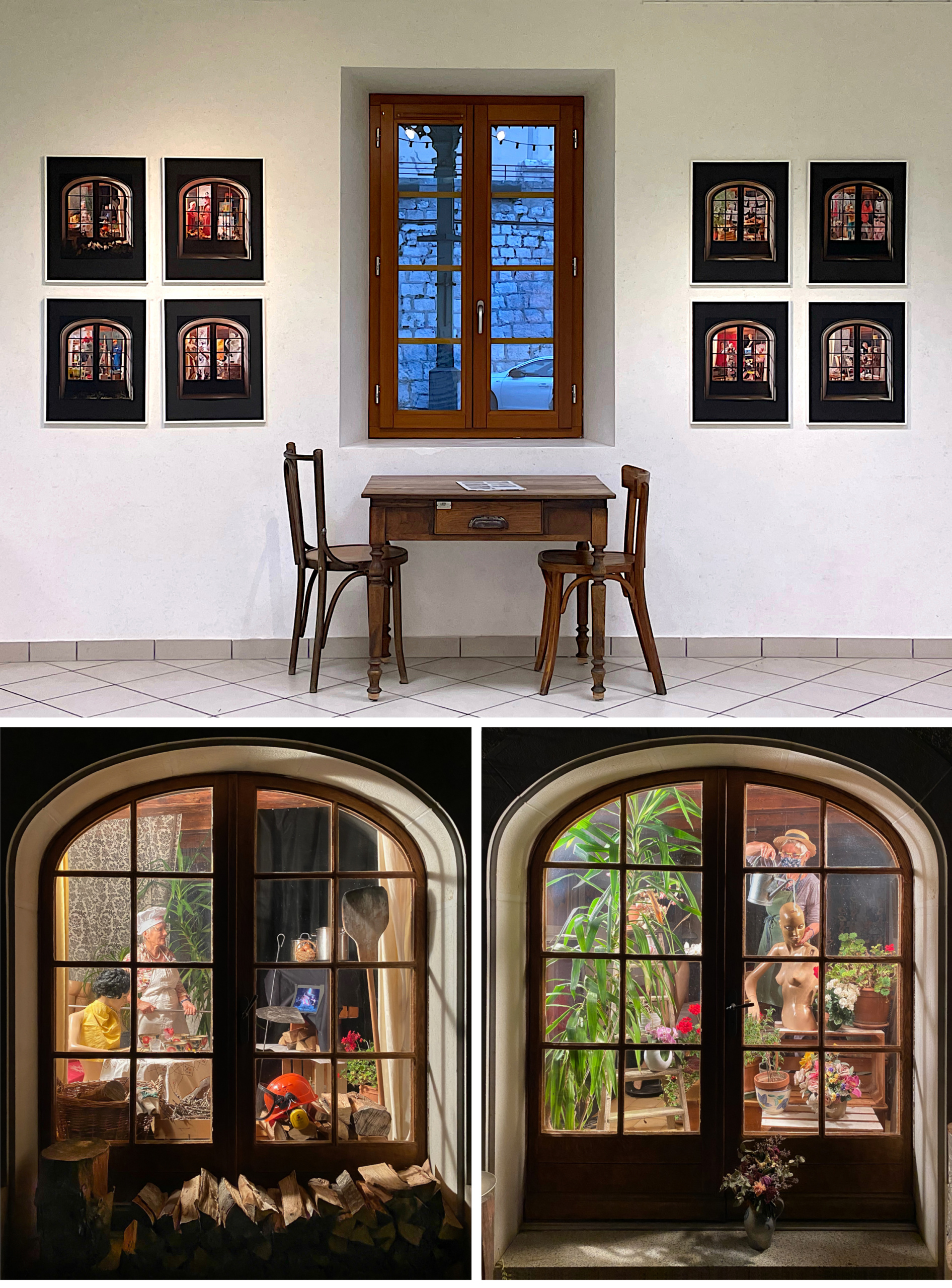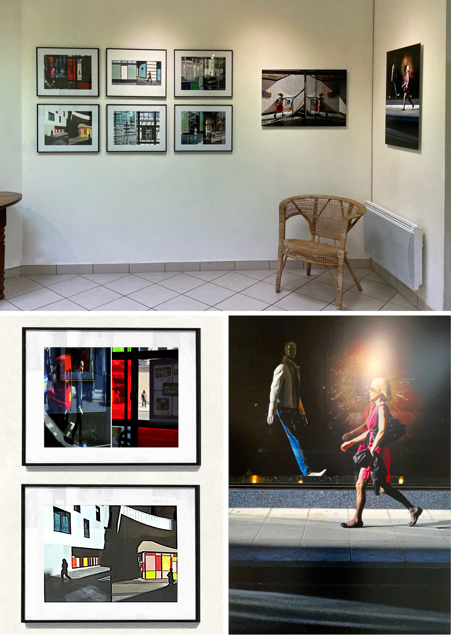 Le travail proposé pour cette exposition « Vitrine » est basé sur quatre photographies qui sont prises à travers une vitre donc « Vitre In ». Dans ce cadre vient s’inviter une autre œuvre photographique en rapport avec la photo.