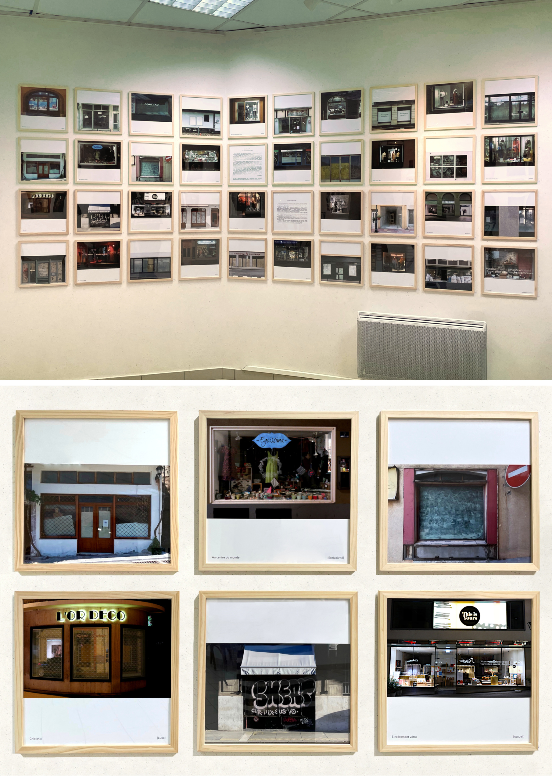 Les textes et légendes de cette double série de photographies doivent beaucoup à Sandrine Le Corre et à son ouvrage Esthétique de la vitrine, Paris, L’Harmattan, 2018.