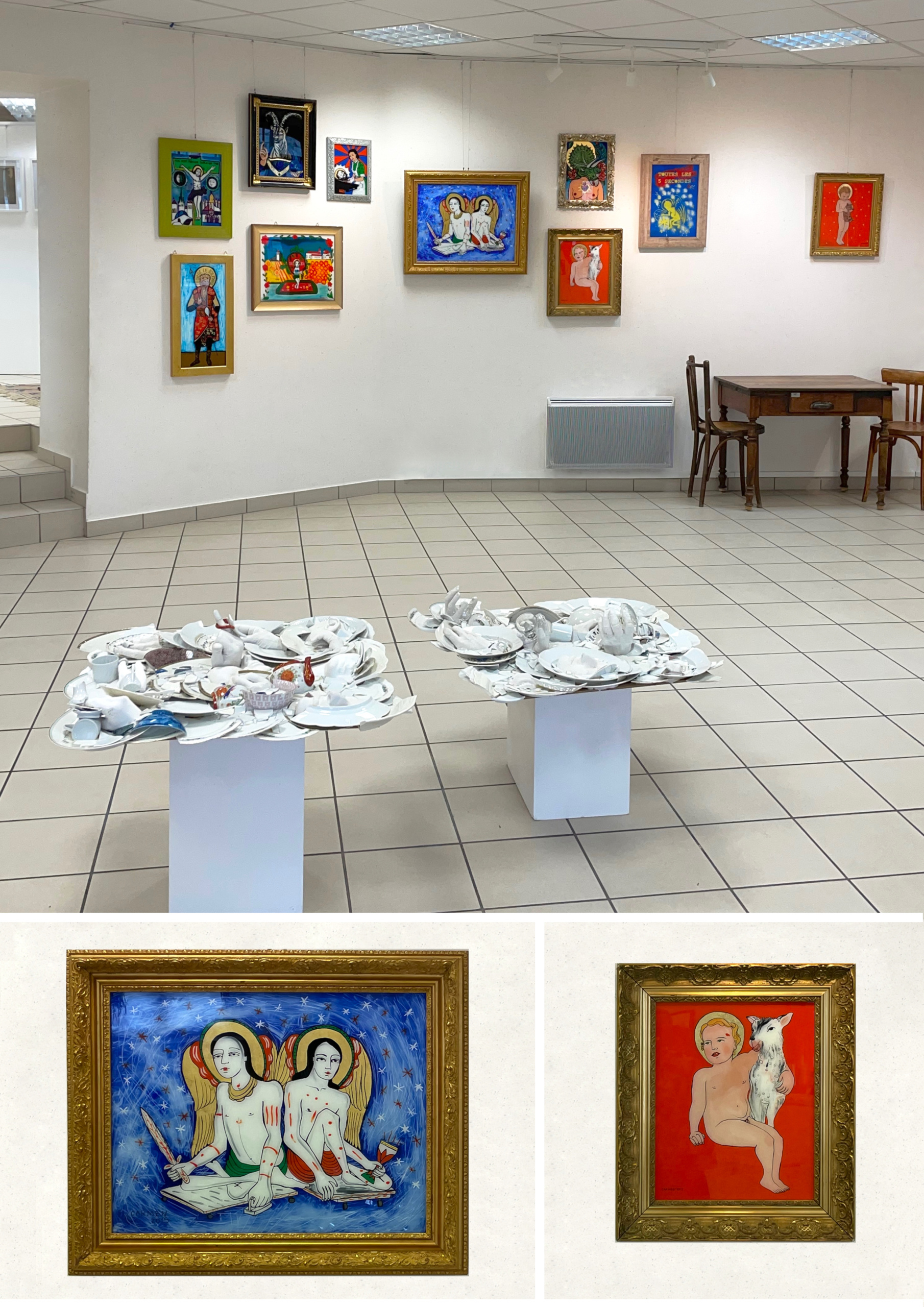 Heureusement, l’art nous garde une grande liberté et c’est avec enthousiasme que j’ai créé chaque jour une vitrine différente qui exprime ce que j’ai fait pendant une année de pandémie. Une seule fois au théâtre sur toute une saison d’abonnement ! ; la famille en images, les tâches quotidiennes, l’art, des travaux dans la maison, et… Noël.