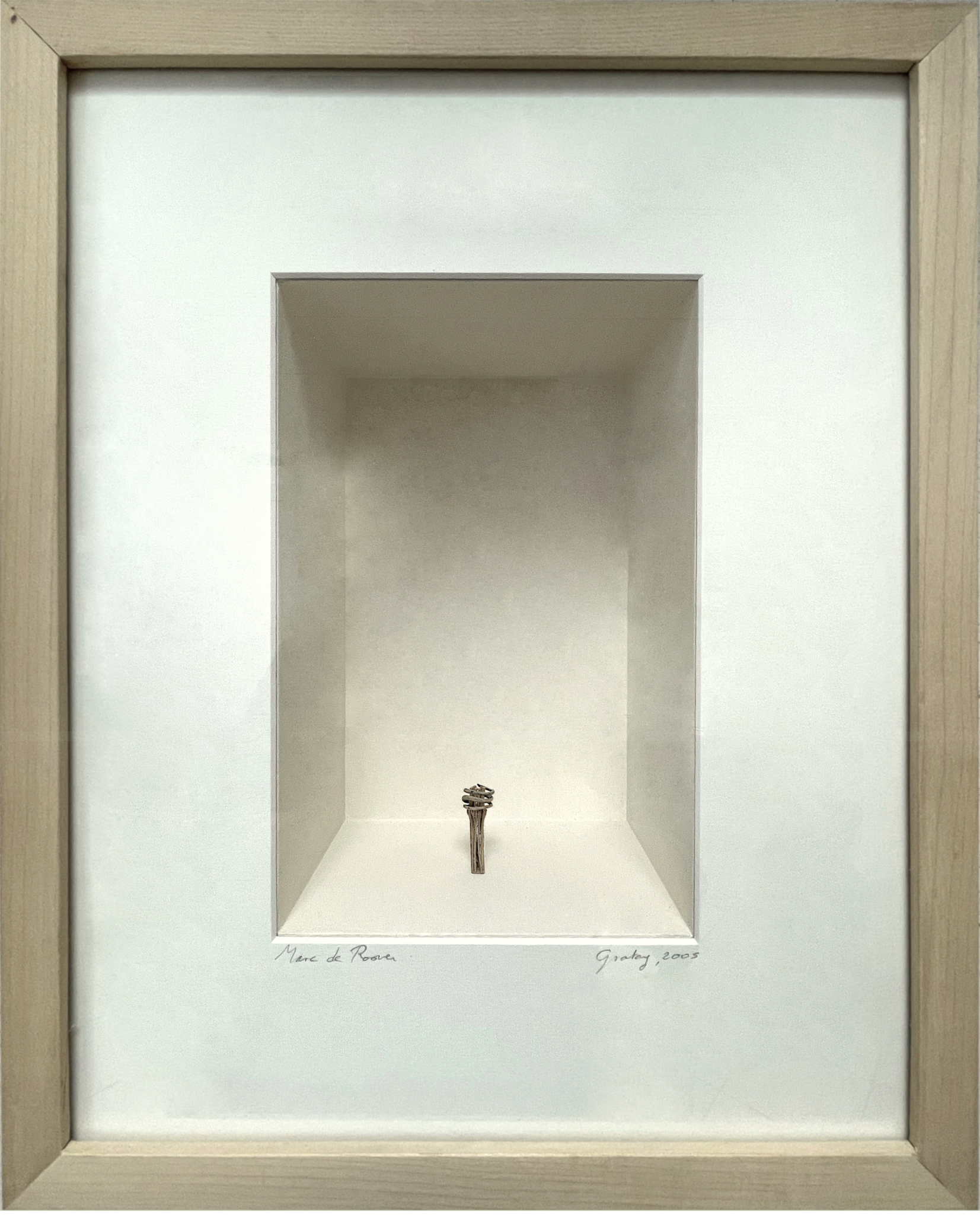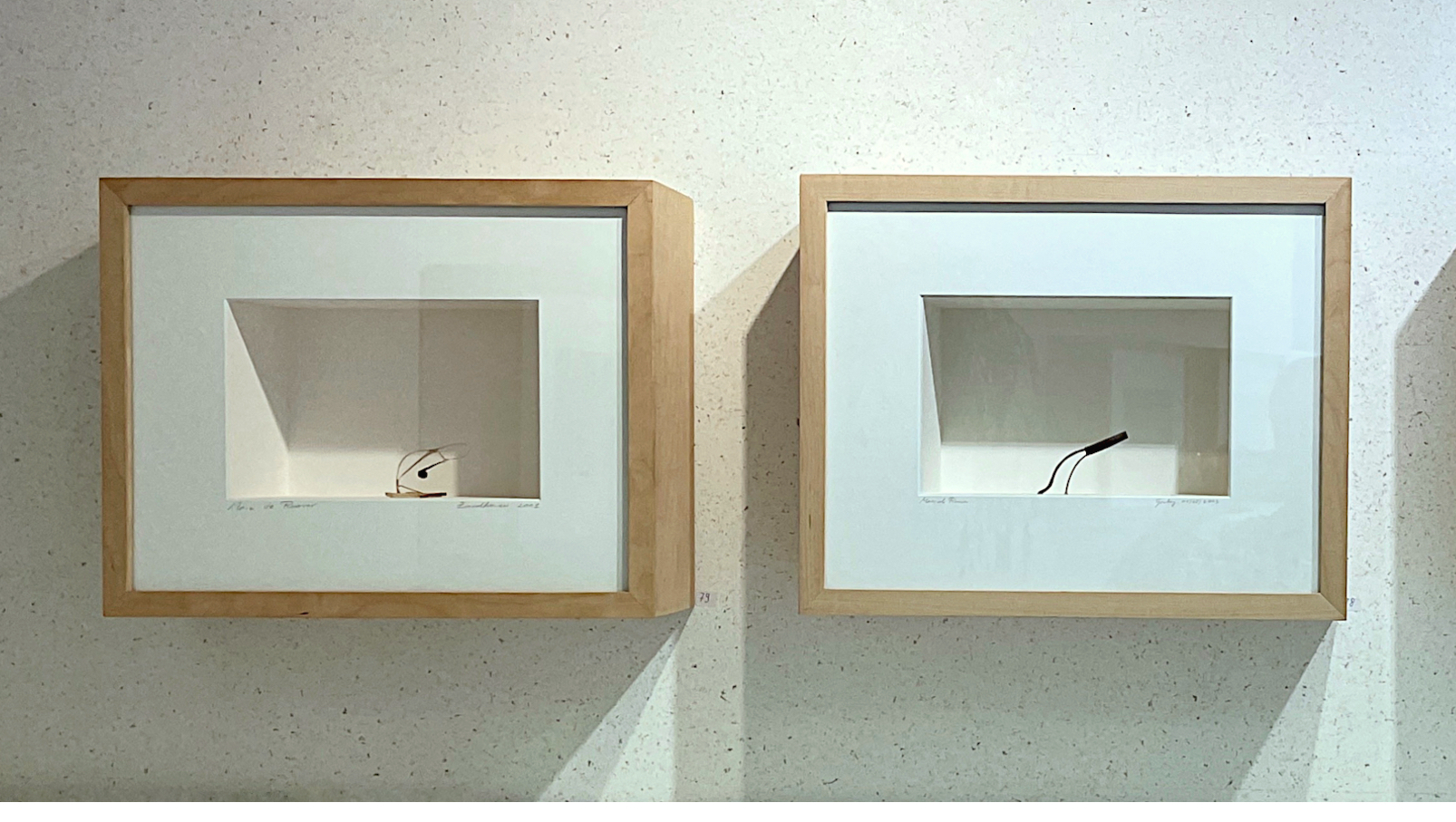 La série d’assemblages est faite entre 2000 et 2016. Il s’agît de sculptures minuscules et minimalistes, assemblées de petits riens trouvés n’importe où, source riche d’étonnement. Elles sont présentées dans des boîtes en bois, avec passe-partout.